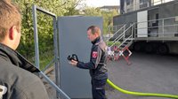 Der eingesetzte Container war rund 45 m2 groß und in mehrere Abschnitte eingeteilt. Beübt wurde ein realitätsnaher Innenangriff, bei einem Wohnungsbrand mit extremen Hitze- und Rauchbedingungen. Die Atemschutzträger erlernen bei dieser Heiß-Ausbildung die optimale Technik und Taktik für die Löscharbeiten mit dem Hohlstrahlrohr bei hohen Temperaturen und schlechter Sicht.