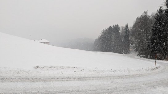 Die Straßen & Zubringer in den Dörfern Holzwinden, Lachstatt, Götzelsdorf und Hasenberg sind nur mäßig vom Schnee befreit (Großteils Schneefahrbahn mit Streumittelauftrag).